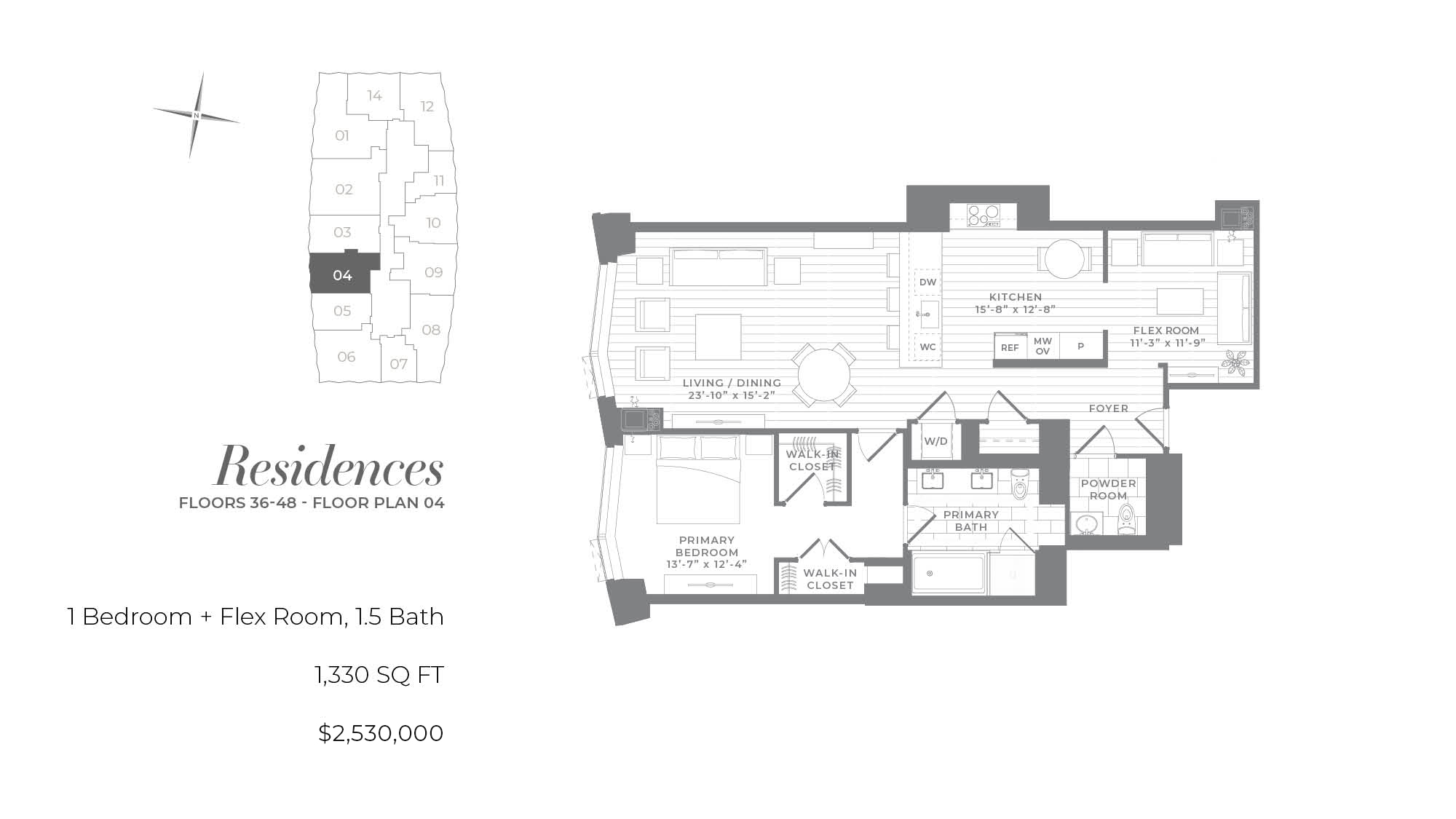 | PH1E | 3 Bed, 3.5 Bath Flex Room |