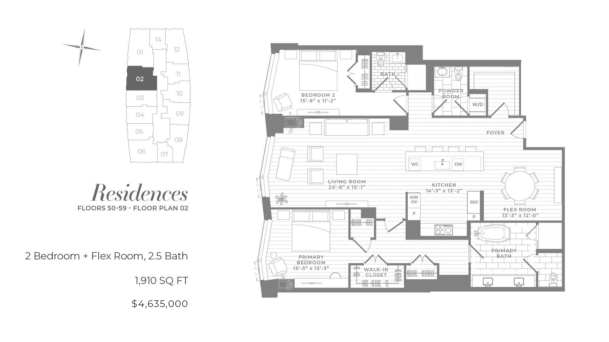 | PH2E | 2 Bed, 2.5 Bath Flex Room |